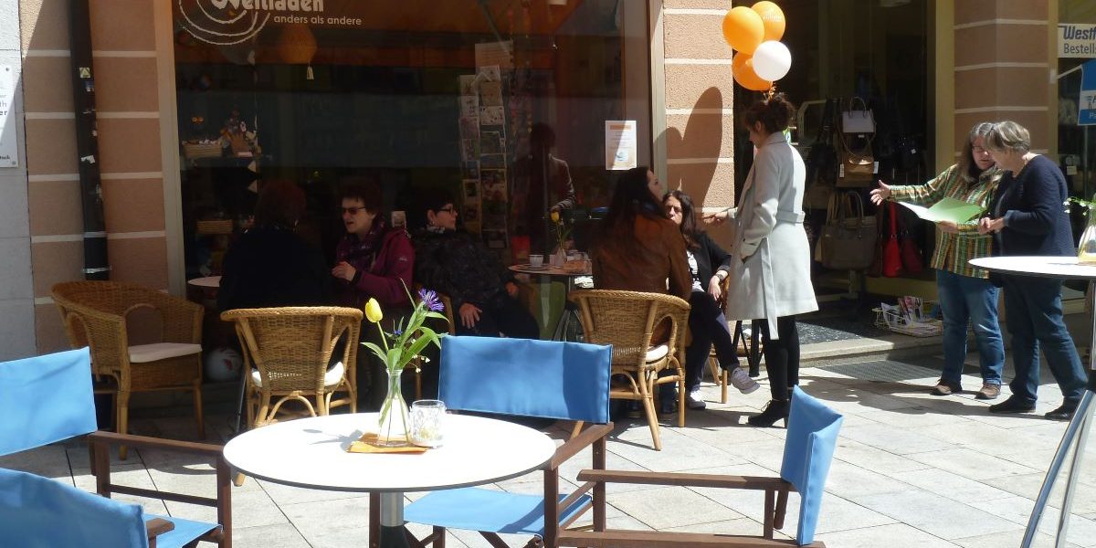 Zum Geburtstag lädt man sich Gäste ein. Das machte auch der Weltladen Schweinfurt zu seinem 30. Geburtstag – mit einer fairen Kaffeetafel am Ladengeschäft in der Wolfsgasse 28. Hier waren KundInnen und PassantInnen zu fairem Kaffee und Kuchen eingeladen. Neben netten Gesprächen mit neuen und alten Bekannten konnte man auch sein Wissen über Länder, Produkte und Fakten des Fairen Handels am Glücksrad testen. Dazu gab es auch noch ausgewähltes Kunsthandwerk zu Geburtstagspreisen.
