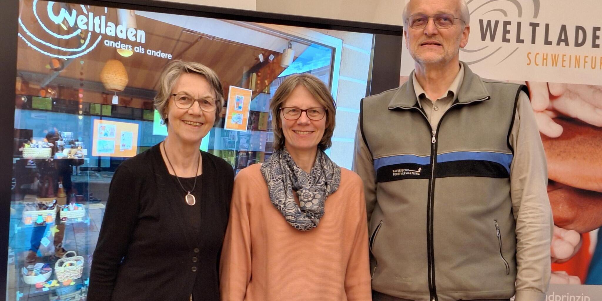 Der alte und neue Vorstand des Vereins Fair handeln Schweinfurt: Andreas Leyrer (1. Vorsitzender) und Ulrike Pfrang. Links Gisela Ulrich von den Voluntarias Alemanas.