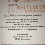 Ein besonderes Highlight war die Grußbotschaft per Video von den Philippinen, die Pater Shay Cullen zum Jubiläum des Arbeitskreises zukommen ließ. Seit vielen Jahren werden Mango und Gummibärchen von Preda im Weltladen zum Kauf angeboten. 1974 gründete er mit anderen zusammen die Stiftung PREDA um Folter- und Missbrauchsopfern des Marcosregimes und der US Militärbasis zu helfen. Die Aufdeckung zahlreicher Menschenrechtsverletzungen, Korruptionsfälle und Kinderhändlerringe ist sein Verdienst.