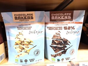 Die Bohnen werden umweltschonend mit dem Schiff „Tres Hombres“ aus der Karibik über den Atlantik nach Amsterdam transportiert, bevor daraus in der Chocolaterie von Chocolatemakers die feinste Bio-Schokolade mit traditionellen Techniken und Sonnenenergie produziert wird.