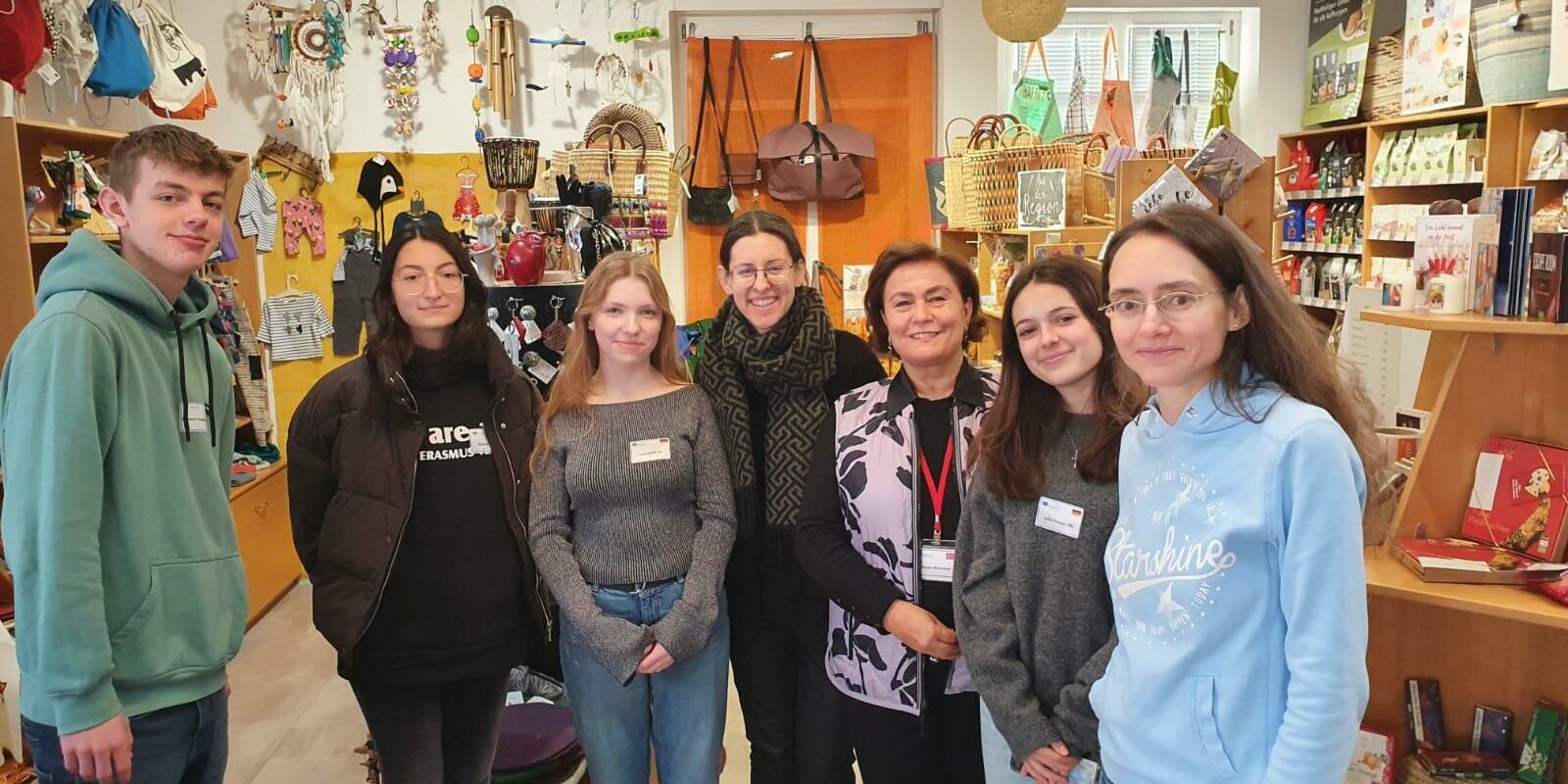5. Dezember 2023 Schüler aus der Türkei und den Niederlanden informieren sich im Weltladen über die 16 Sdgs. Der Besuch fand im Rahmen des Erasmus-Projekts des Gymnasiums Burglengenfelds statt.