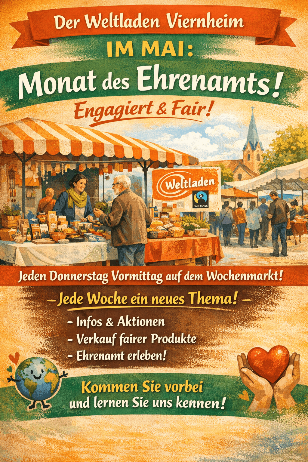 Jeder Donnerstag steht unter einem anderen spannenden Thema rund um Ehrenamt, fairen Handel und globale Verantwortung.