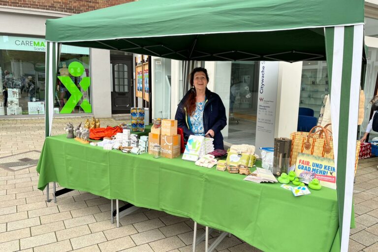 Am 7. April 2024 waren wir im Rahmen des Frühlingsfestes in Wesel beim Ort der Nachhaltigkeit vertreten. Als Mitglied des Fairtrade-Teams Wesel beteiligten wir uns mit einigen Aktionen rund um Nachhaltigkeit und den Fairen Handel. An unserem Stand verkauften wir u.a. upcycling-Produkte. Und die Besucher konnten aktiv werden:   Mit Produkten aus dem Weltladen ein…