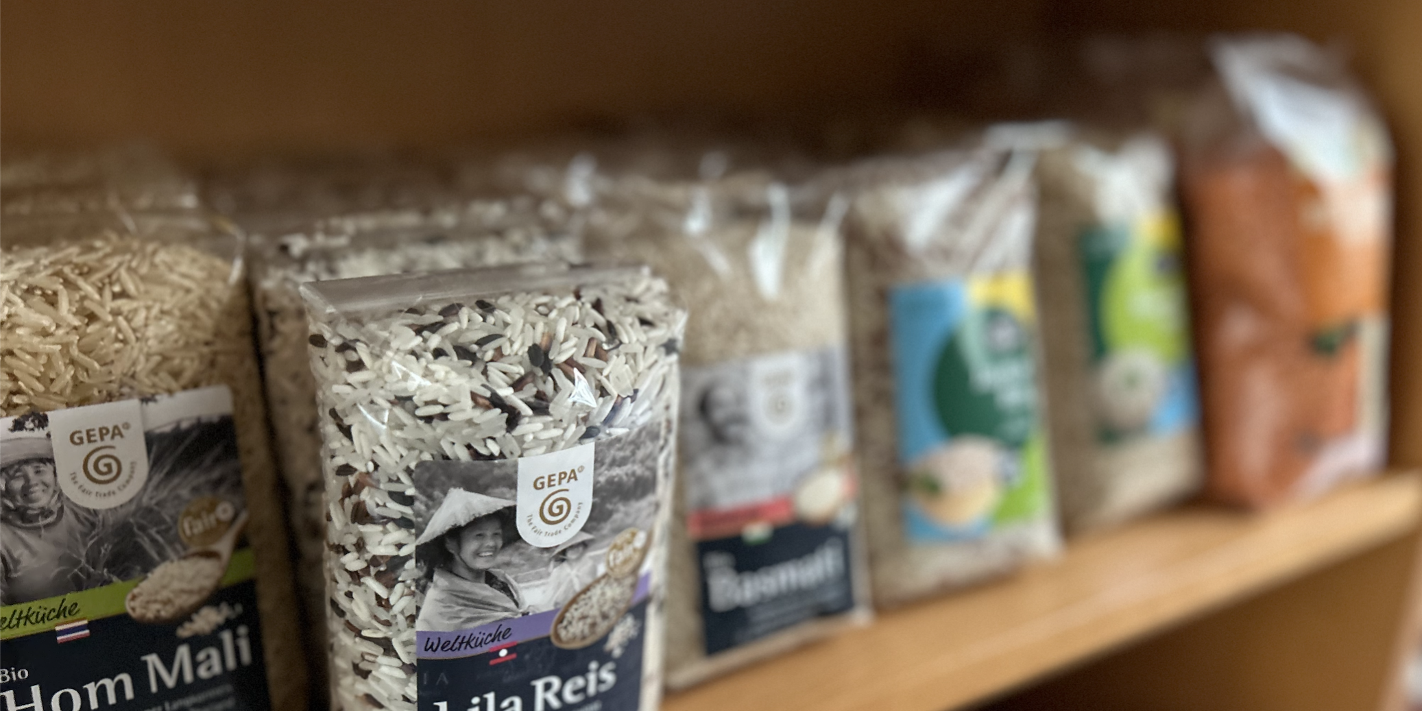 Verschiedene Reissorten kosten, pur und mit Beilage, und dabei erfahren wie die Reiskooperativen, die ihn anbauen, arbeiten, und was sie nebenbei bewegen.