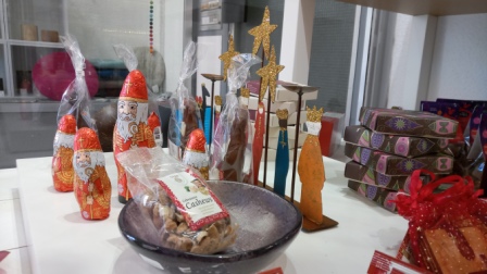 Der Verkauf von Saisonartikeln ist in vollem Gang. Einige Artikel sind bereits ausverkauft – noch ist aber eine große Auswahl an weihnachtlichen Angeboten vorhanden. An den Adventssamstagen haben wir abweichend von der üblichen Öffnungszeit an Samstagen (bis 13 Uhr) bis 16 Uhr geöffnet.