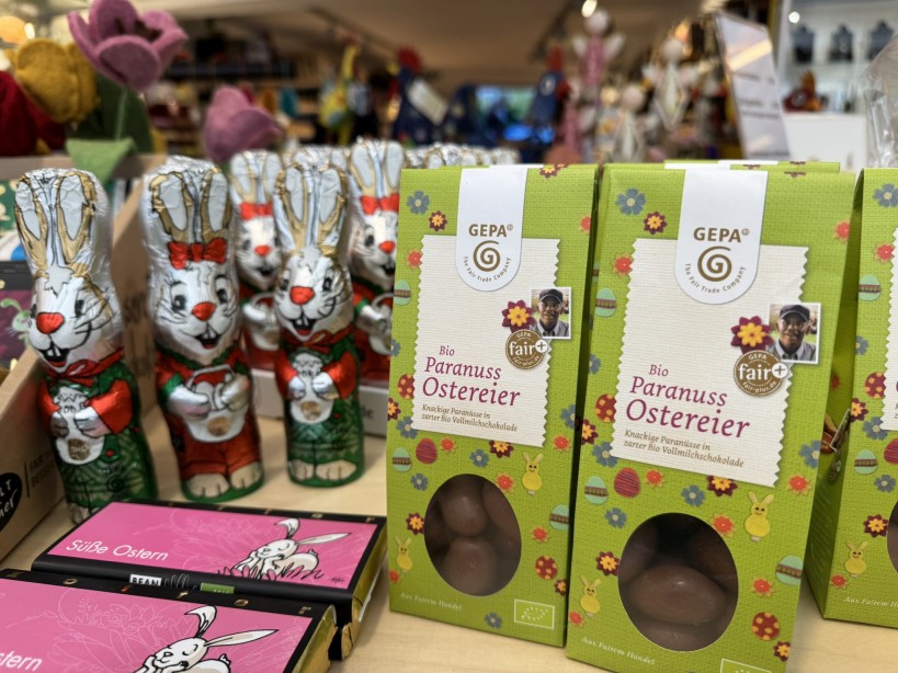 Im Weltladen Wolfenbüttel gibt es wieder viele Leckereien für die Osterfeiertage. Auch Kunstartikel wie z.B. Eierwärmer sind wieder im Angebot.